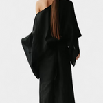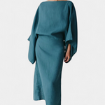 Filipakimono silhueta, izdelana iz lahke mešanice lana in bombaža, objema telo z organsko svežino in strukturo.