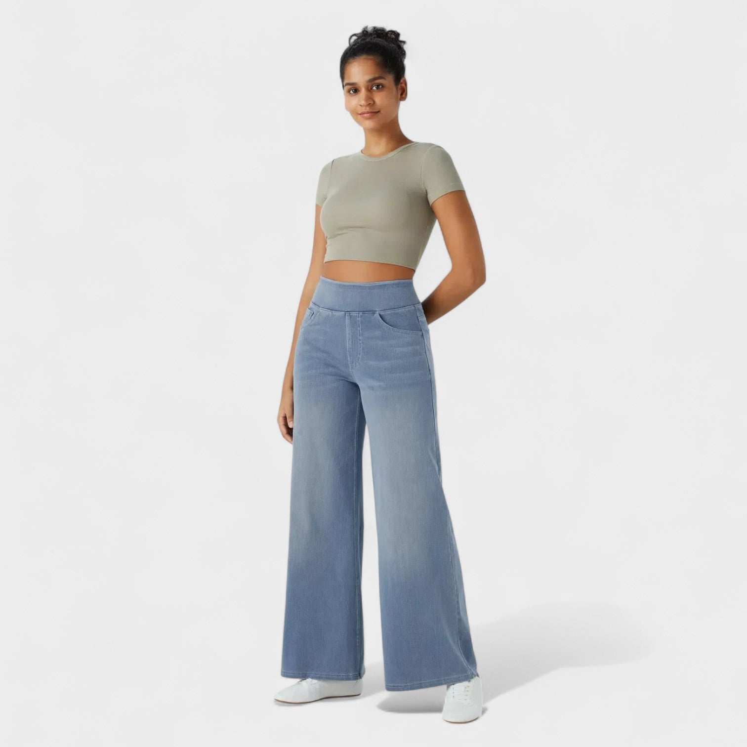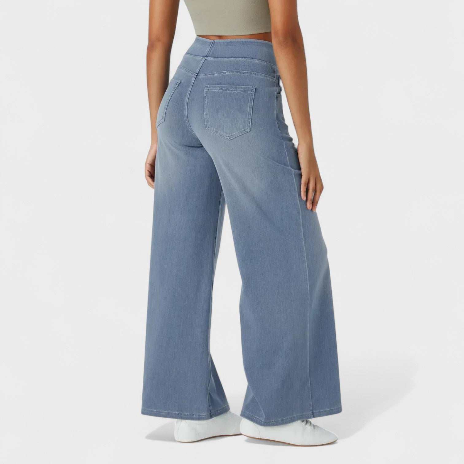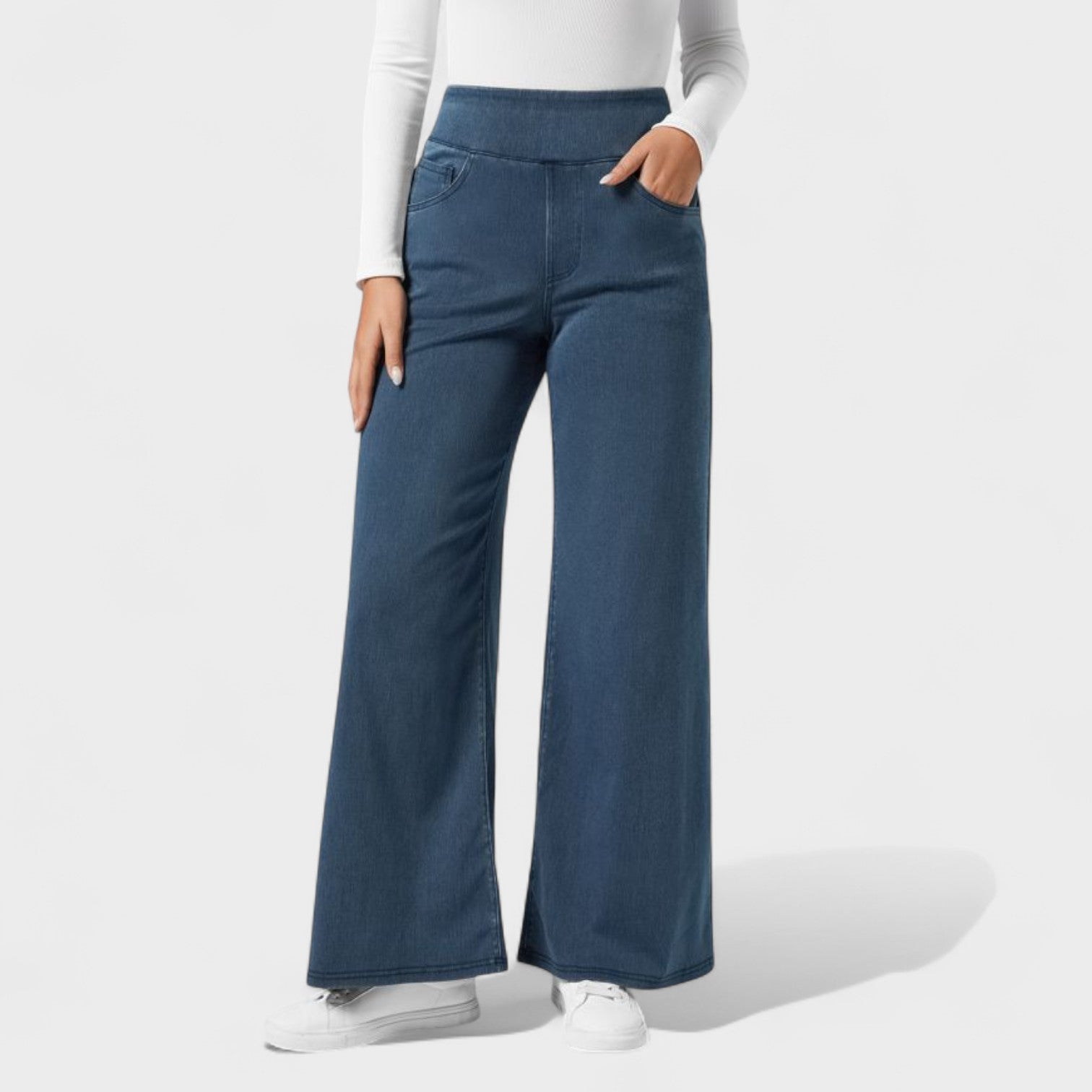 Odkrijte popolno ravnotežje med udobjem in eleganco s hlačami iz traperja Clara. Njihov dizajn širokih hlačnic podaljšuje silhueto brez žrtvovanja udobja, kar je idealno za aktivne ženske, ki želijo izgledati dobro vsak dan.
