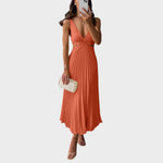 Katarina - Elegantna Obleka z V-Izrezom in Plisiranim Dnom