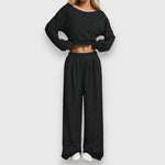 Moderen 2-delni komplet z brezrokavnikom in širokimi hlačami z vrvico je idealna izbira za sproščen, športen stil.