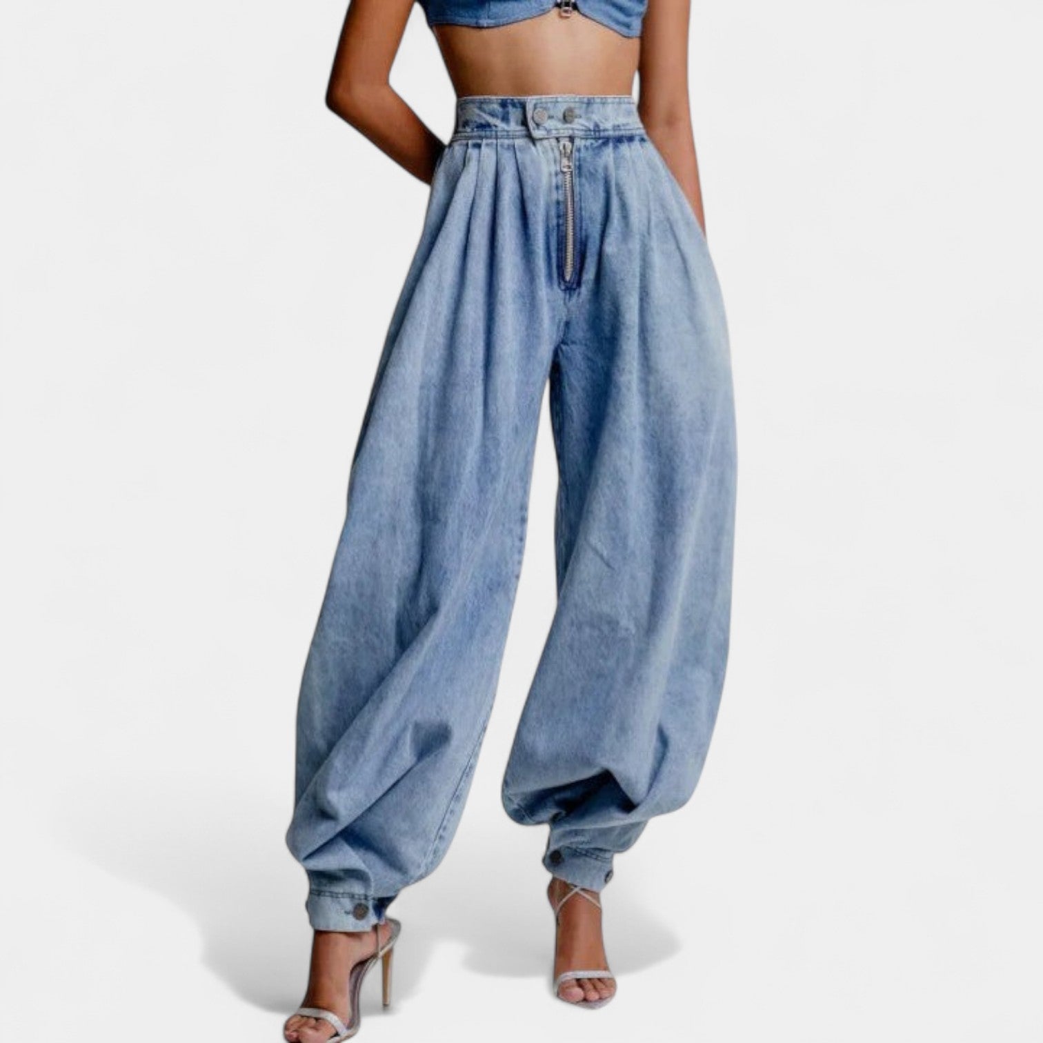 Karolína - Stilne Jeans Hlače s Širokimi Nohavicami