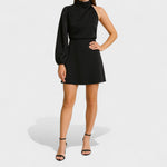 Obleka Valmira je hommage modernemu slogu z drzno noto. Oblikovana z enim ramenom in dolgimi, tekočimi rokavi, ustvarja eleganten in zapeljiv kontrast. Idealna za večerje, zabave ali posebne noči, ko želite zasvetiti s sofisticiranostjo.