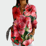 Dolgo rokav je s poudarjenimi rožnatimi motivi v odtenkih rdeče in roza dodaja živahnost in poletno razpoloženje vsakemu videzu. Klasičen ovratnik in gumbni dizajn ga naredijo vsestranskega, idealnega za sproščene, pa tudi bolj elegantne priložnosti.