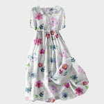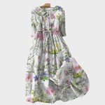 Odkrijte popolno kombinacijo sproščenosti in romantike s dolgo obleko s kratkimi rokavi. Ovratnik z nežnim robom in vrsta gumbov prinašata prefinjenost, medtem ko nastavljiva vrvica v pasu omogoča prilagojeno prileganje. Nabran krožnik ustvarja tekoč padec, ki sledi vsakemu vašemu koraku.