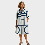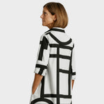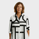 Poudarite svoj stil z očarljivo obleko z geometrijskim vzorcem. Kombinacija klasičnega kroja srajce in sodobnega dizajna jo naredi popolno izbiro za ženske, ki želijo združiti eleganco in udobje.