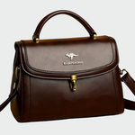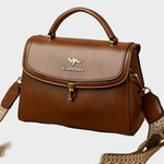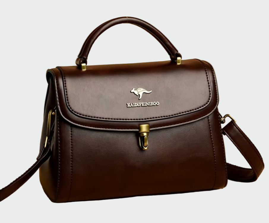 Elegantna ženska torba za roko v črni barvi, izdelana iz visokokakovostne luksuzne umetne usnje in z rafiniranim oblikovanjem. Ima kovinsko zapiranje v zlatem odtenku in odstranljiv ramenski trak za praktičnost in prilagodljivost. Kos, ki združuje večno stil in funkcionalnost, idealen za vsakodnevne in bolj formalne priložnosti.
