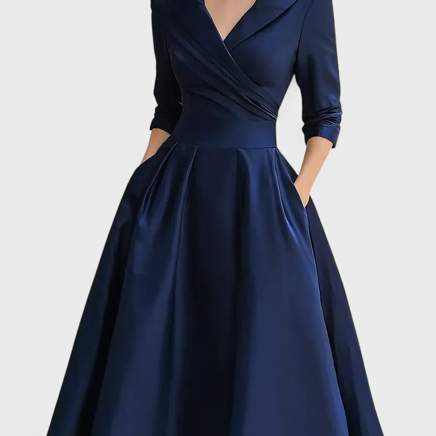 Katarina - Elegantna Obleka z V-Izrezom in Plisiranim Dnom