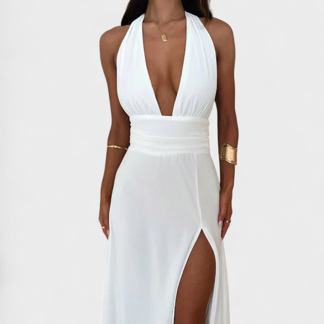 Sandra - Dolga obleka s pasom