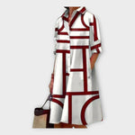 Odkrijte našo priljubljeno ročno izdelano premium obleko z geometrijskim vzorcem, idealno za ženske, ki želijo izstopati stilsko, ne da bi žrtvovale udobje.