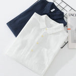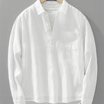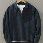 Oblikovana za diskreten videz, ta srajca z delnim gumbom ponuja tekočo silhueto in udobje iz dihljivega bombaža in lana.