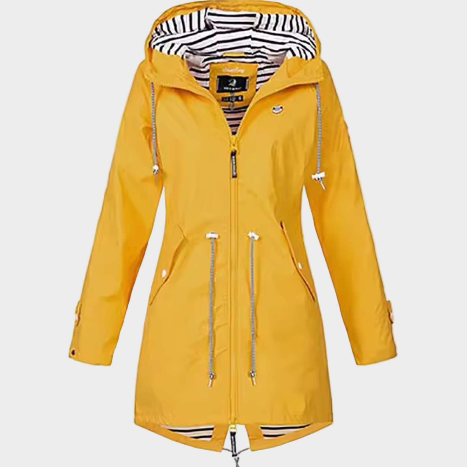 Jakna Silva je idealna za deževne dni. Vodoodporen poliester in nastavljiv pas zagotavljata, da ostanete suhi in ohranite lepo silhueto.